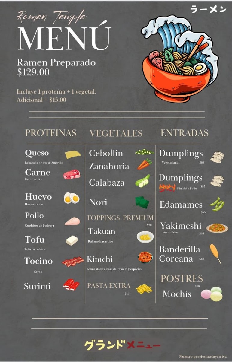 The menu at Ramen Temple offers a thoughtfully curated selection of Asian-inspired dishes that feel both approachable and satisfying. Designed for casual dining, it brings together comforting noodle bowls, light snacks, and refreshing drinks that complement the warm, communal atmosphere of the space.